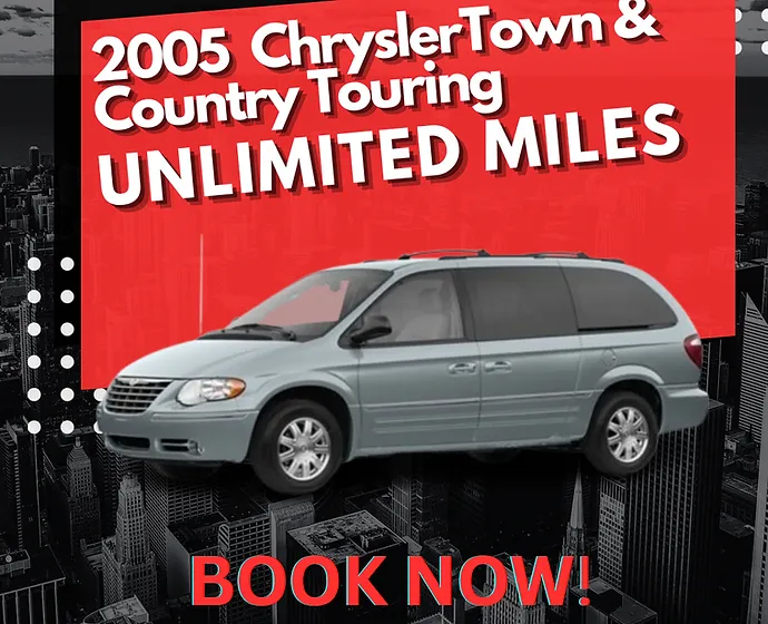 Drive with ease in the reliable 2005 Chrysler Town and Country Touring from No Frills Cars. Our cheap rentals and unlimited miles make this the perfect companion for your daily hustle. With our commitment to maintaining your ride, we take care of oil changes and tire repairs, ensuring your focus stays on the road ahead. Experience the comfort, efficiency, and affordability you need to thrive. Rent this car, and you'll want it.