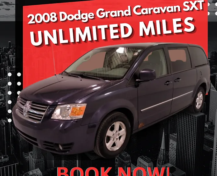Drive with ease in the reliable 2008 Dodge Grand Caravan SXT from No Frills Cars. Our cheap rentals and unlimited miles make this the perfect companion for your daily hustle. With our commitment to maintaining your ride, we take care of oil changes and tire repairs, ensuring your focus stays on the road ahead. Experience the comfort, efficiency, and affordability you need to thrive. Rent this car, and you'll want it.
