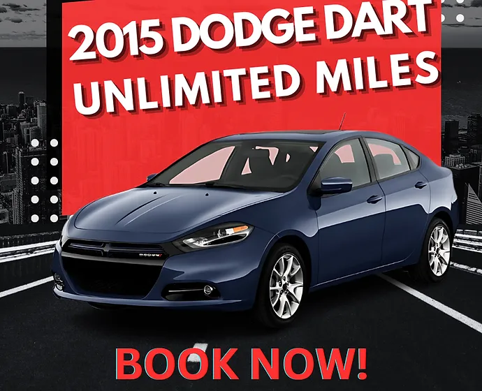 Drive with ease in the reliable 2015 Dodge Dart from No Frills Cars. Our cheap rentals and unlimited miles make this the perfect companion for your daily hustle. With our commitment to maintaining your ride, we take care of oil changes and tire repairs, ensuring your focus stays on the road ahead. Experience the comfort, efficiency, and affordability you need to thrive. Daily rental price: $75. Rent this car, and you'll want it.