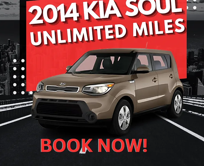 Drive with ease in the reliable 2014 Kia Soul from No Frills Cars. Our cheap rentals and unlimited miles make this the perfect companion for your daily hustle. With our commitment to maintaining your ride, we take care of oil changes and tire repairs, ensuring your focus stays on the road ahead. Experience the comfort, efficiency, and affordability you need to thrive. Daily rental price: $75. Rent this car, and you'll want it.
