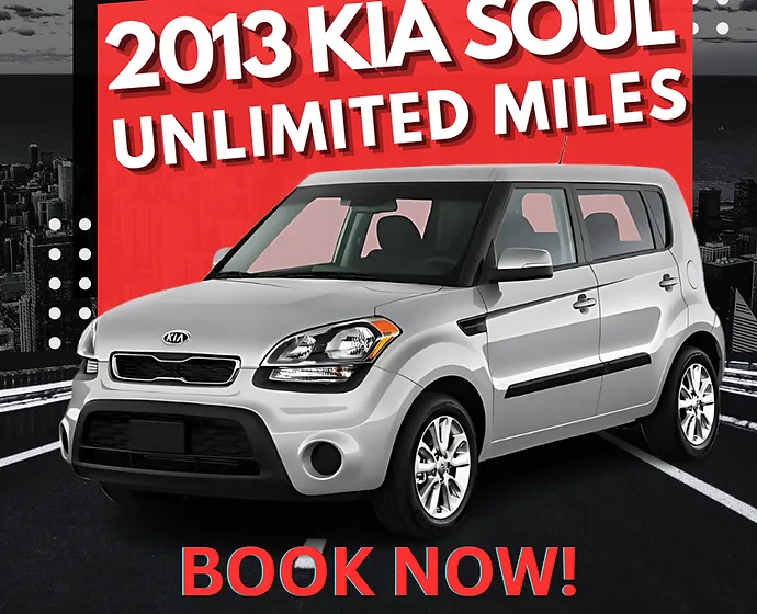 Drive with ease in the reliable 2013 Kia Soul from No Frills Cars. Our cheap rentals and unlimited miles make this the perfect companion for your daily hustle. With our commitment to maintaining your ride, we take care of oil changes and tire repairs, ensuring your focus stays on the road ahead. Experience the comfort, efficiency, and affordability you need to thrive. Daily rental price: $75. Rent this car, and you'll want it.