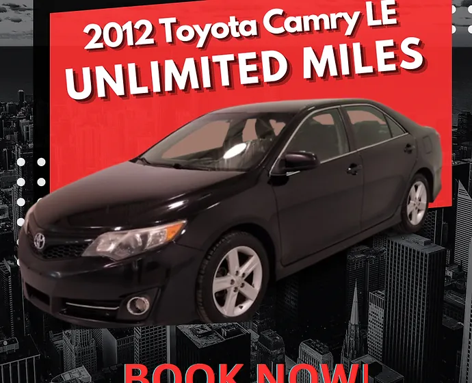 Drive with ease in the reliable 2012 Toyota Camry LE from No Frills Cars. Our cheap rentals and unlimited miles make this the perfect companion for your daily hustle. With our commitment to maintaining your ride, we take care of oil changes and tire repairs, ensuring your focus stays on the road ahead. Experience the comfort, efficiency, and affordability you need to thrive. Rent this car, and you'll want it.