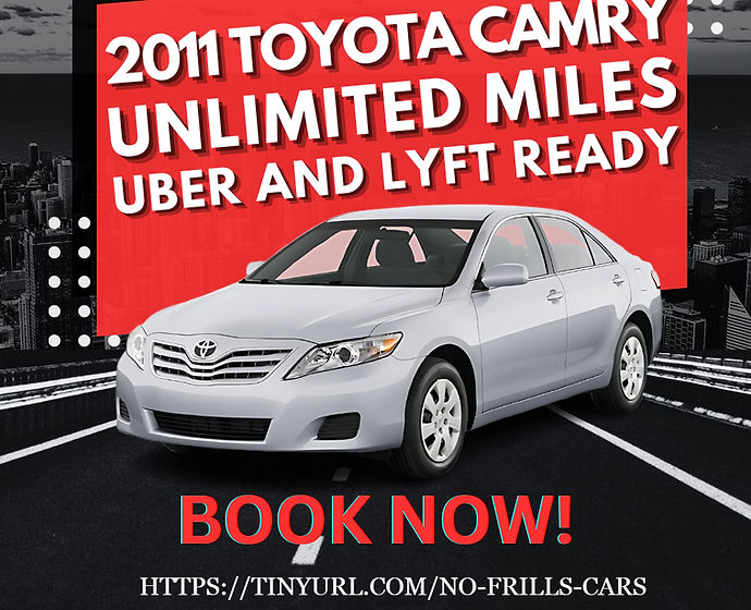 Drive with ease in the reliable 2011 Toyota Camry from No Frills Cars. Our cheap rentals and unlimited miles make this the perfect companion for your daily hustle. With our commitment to maintaining your ride, we take care of oil changes and tire repairs, ensuring your focus stays on the road ahead. Experience the comfort, efficiency, and affordability you need to thrive. Daily rental price: $75. Rent this car, and you'll want it.