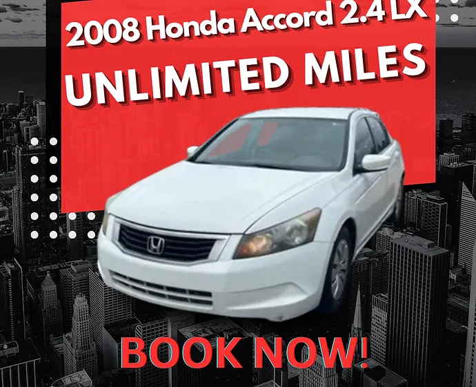 Drive with ease in the reliable 2008 Honda Accord 2.4 LX from No Frills Cars. Our cheap rentals and unlimited miles make this the perfect companion for your daily hustle. With our commitment to maintaining your ride, we take care of oil changes and tire repairs, ensuring your focus stays on the road ahead. Experience the comfort, efficiency, and affordability you need to thrive. Rent this car, and you'll want it.