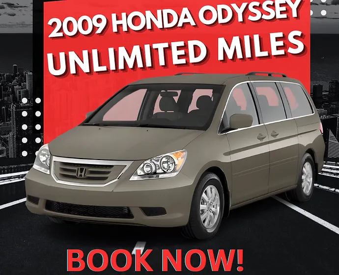Drive with ease in the reliable 2009 Honda Odyssey from No Frills Cars. Our cheap rentals and unlimited miles make this the perfect companion for your daily hustle. With our commitment to maintaining your ride, we take care of oil changes and tire repairs, ensuring your focus stays on the road ahead. Experience the comfort, efficiency, and affordability you need to thrive. Daily rental price: $75. Rent this car, and you'll want it.