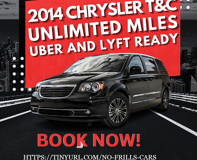 Drive with ease in the reliable 2014 Chrysler Town and Country from No Frills Cars. Our cheap rentals and unlimited miles make this the perfect companion for your daily hustle. With our commitment to maintaining your ride, we take care of oil changes and tire repairs, ensuring your focus stays on the road ahead. Experience the comfort, efficiency, and affordability you need to thrive. Daily rental price: $75. Rent this car, and you'll want it.