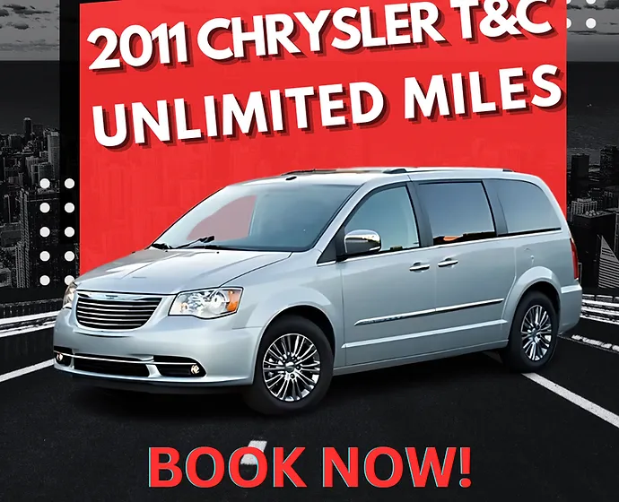 Drive with ease in the reliable 2011 Chrysler Town and Country from No Frills Cars. Our cheap rentals and unlimited miles make this the perfect companion for your daily hustle. With our commitment to maintaining your ride, we take care of oil changes and tire repairs, ensuring your focus stays on the road ahead. Experience the comfort, efficiency, and affordability you need to thrive. Rent this car, and you'll want it.