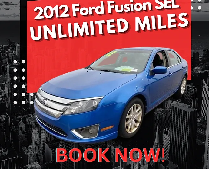 Drive with ease in the reliable 2012 Ford Fusion SEL from No Frills Cars. Our cheap rentals and unlimited miles make this the perfect companion for your daily hustle. With our commitment to maintaining your ride, we take care of oil changes and tire repairs, ensuring your focus stays on the road ahead. Experience the comfort, efficiency, and affordability you need to thrive. Rent this car, and you'll want it.